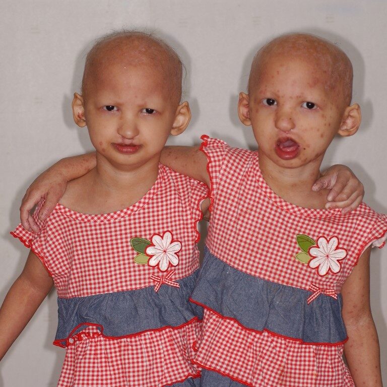 Two twin sisters named Chanoknat (Nong Poo) and Chanoknun (Nong Por) born with cleft lip and cleft palate with poor condition called Hay-Wells Syndrome which is a rare disorder characterized by a wide variety of symptoms that can affect the skin, hair, nails, teeth, certain glands, hands and feet, requiring specialized care. The twin girls raised in Ubonratchathani living with their parents, older sister, and aunt. The family never thought that their child would have such condition and felt worried for both of them. Their parents hoped for a way to treat their daughters and free them from the disease so that they could have a normal life like other child.