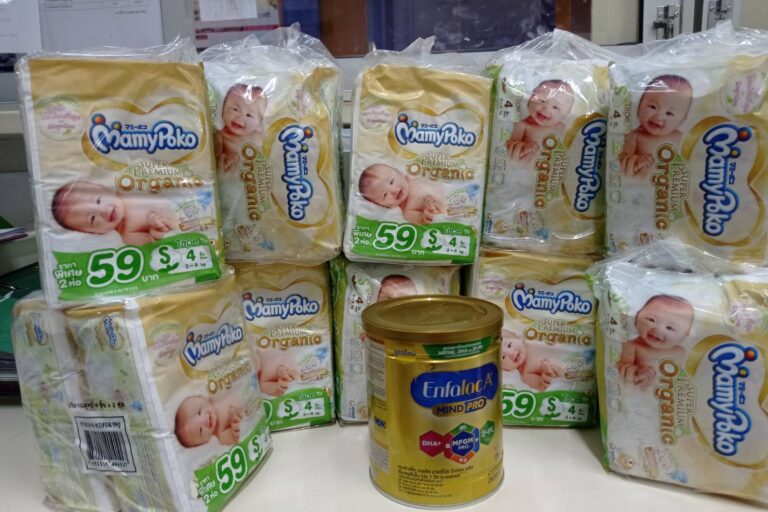 ครอบครัวเดชาวิริยะกุล โดยนายวีระพันธ์ น.ส.อิศิตาพัณญ์ ด.ญ.ดาริน และ ด.ช.ปริณ ส่งสิ่งของมาบริจาค ประกอบด้วย นมผงสำหรับเด็กเล็ก 1 กระป๋อง ผ้าอ้อมสำเร็จรูป จำนวน 182 ชิ้น…