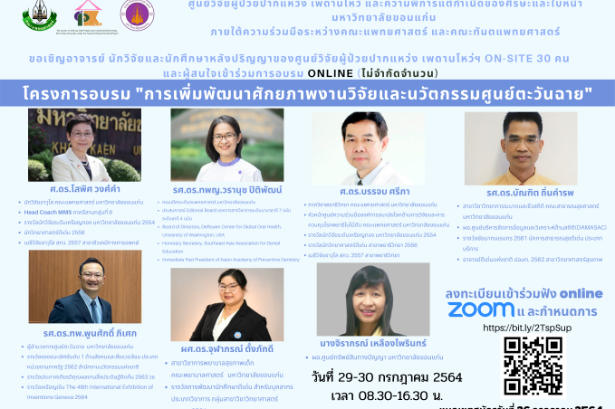 ศูนย์วิจัยผู้ป่วยปากแหว่ง เพดานโหว่ และความพิการแต่กำเนิดของศีรษะและใบหน้า หน่วยงานด้านการวิจัยของศูนย์ตะวันฉาย จัดโครงการอบรม การเพิ่มพัฒนาศักยภาพงานวิจัยและนวัตกรรมของศูนย์ตะวันฉาย เมื่อวันที่ 29 – 30 กรกฎาคม 2564 เวลา 08.30-16.30 น.…
