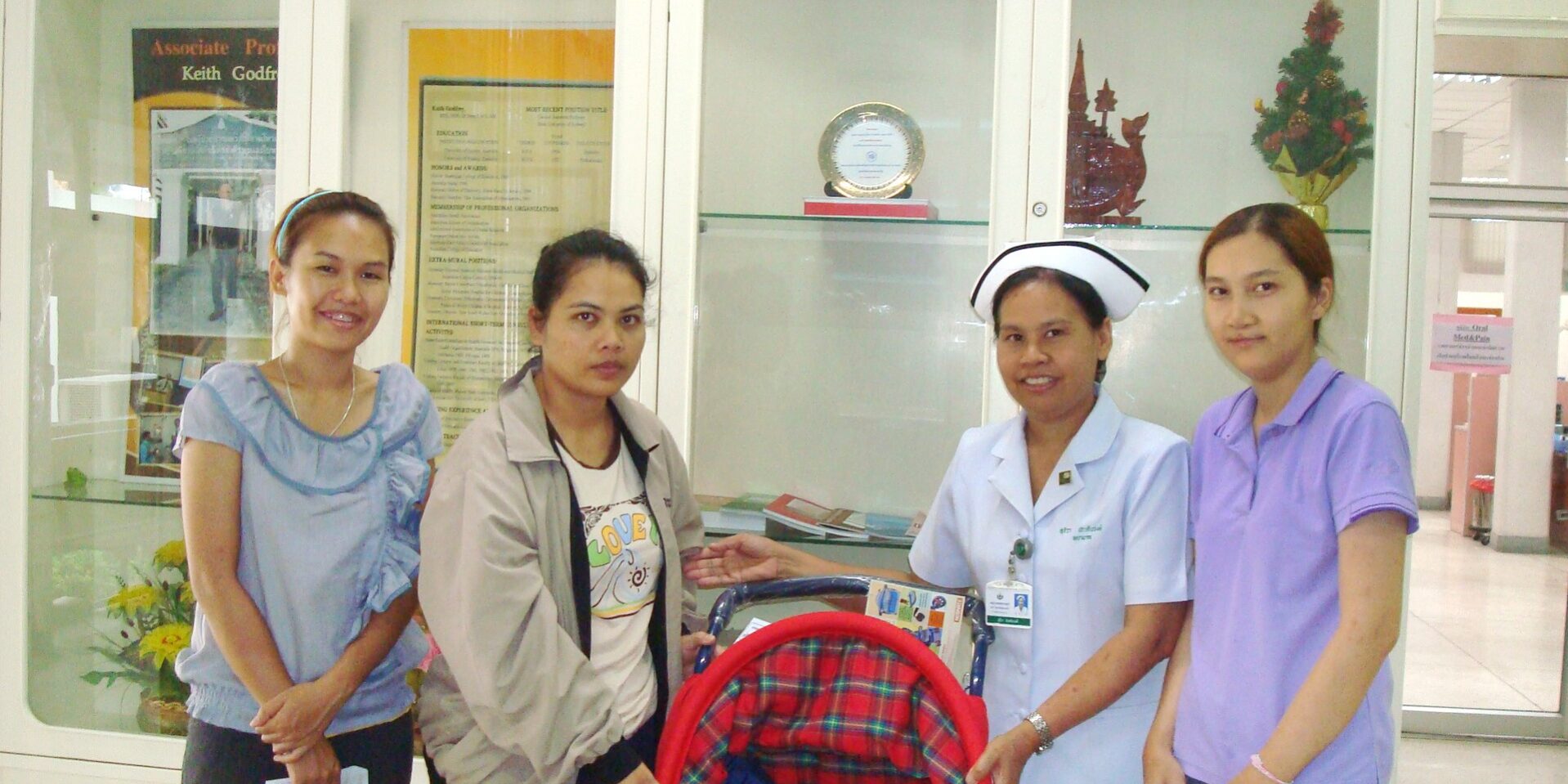 คุณอิริยนา ตรีเมฆ มารดาของ ด.ญ.พัดชา สู้ณรงค์ ผู้ป่วยปากแหว่งเพดานโหว่และมีความพิการร่วมอื่นๆ บริจาครถเข็น โดย คุณสุธีรา ประดับวงษ์ กรรมการมูลนิธิและพยาบาลประสานงานฯ ณ ศูนย์ตะวันฉาย เมื่อวันที่ 28 มิถุนายน 2553