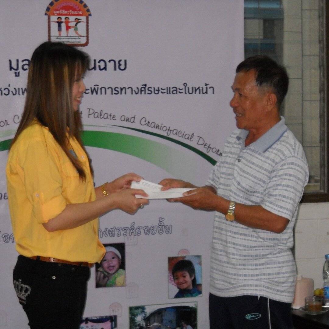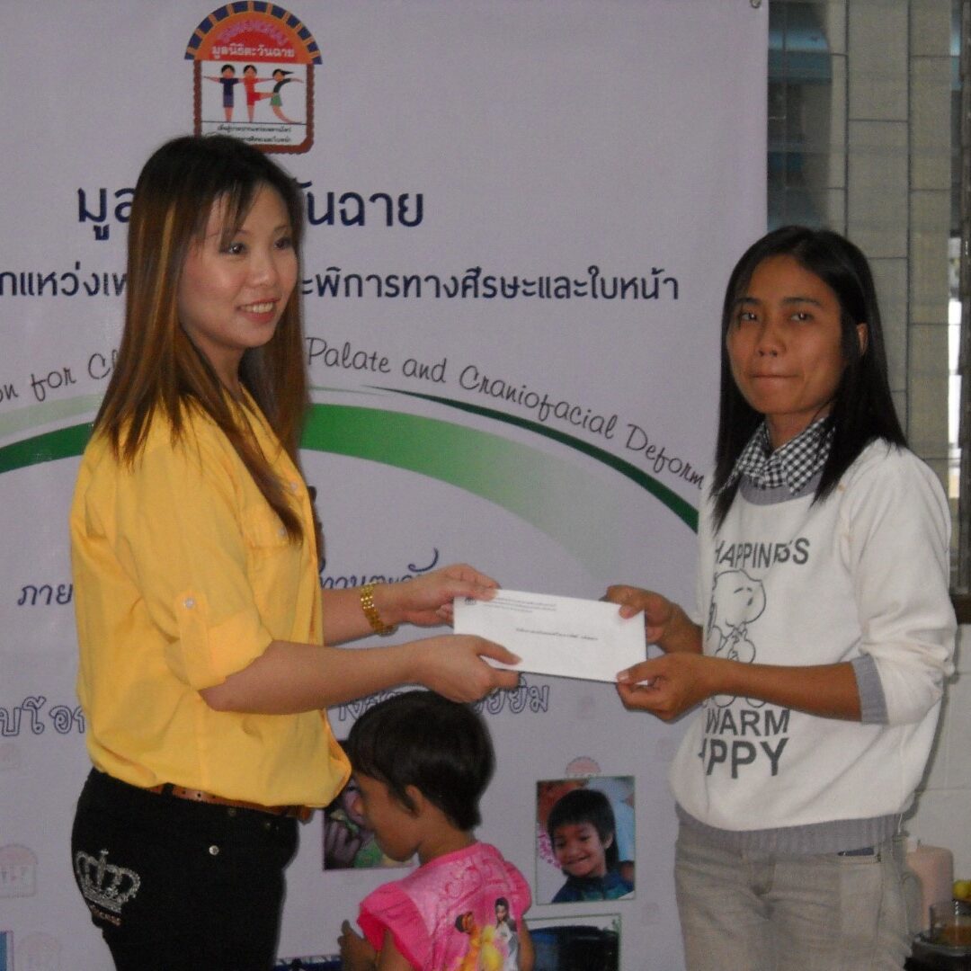 คุณธัญญลักษณ์ ถิรกนกวิไล Brand Manager Banana IT บริษัท คอมเซเว่น อินเตอร์เนชั่นแนล จำกัด บริจาคเงินแก่ผู้ป่วยและครอบครัว เมื่อวันที่ 15 ธันวาคม 2553