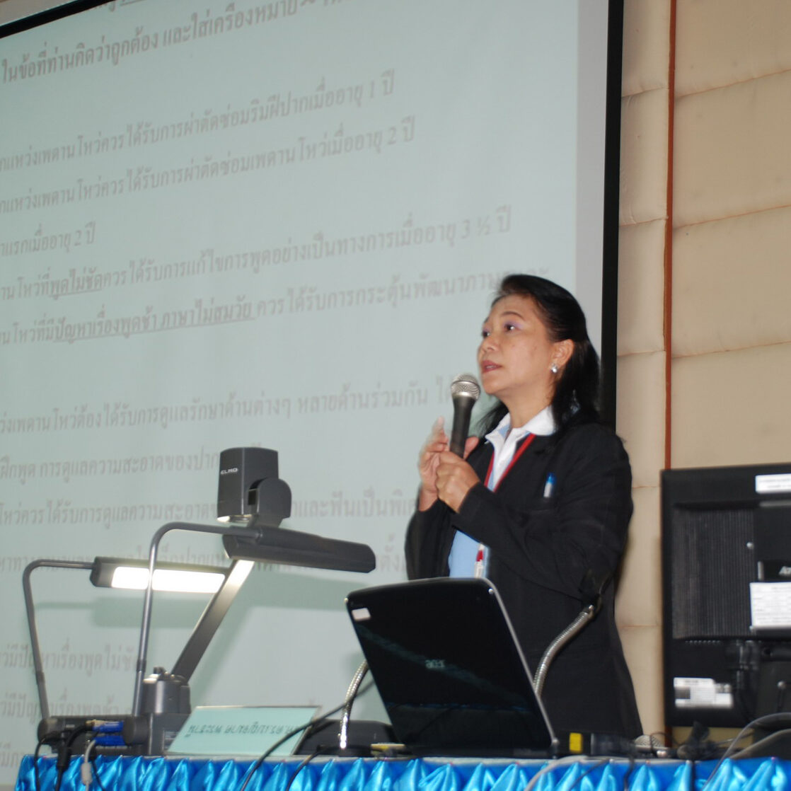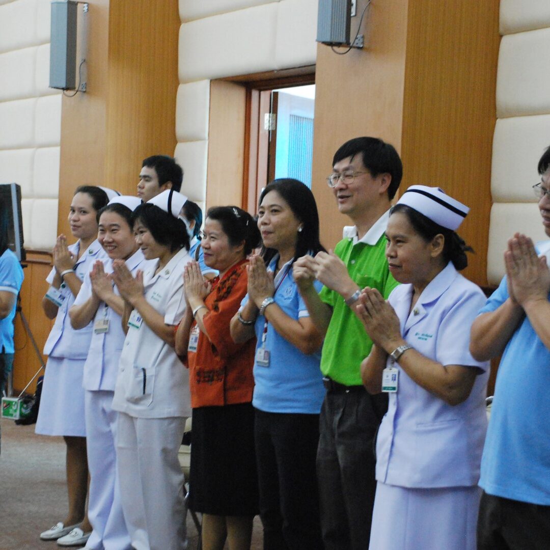 - บุคลากรทางการแพทย์ที่ผ่านการอบรมที่ผ่านการอบรมเชิงปฏิบัติการ การคัดแยกปัญหาทางภาษา การพูดและการได้ยินสำหรับบุคลากรทางการแพทย์ ในเขตภาคตะวันออกเฉียงเหนือในโครงการยิ้มสวยเสียงใส จำนวนทั้งหมด 8 ท่านจาก 8 โรงพยาบาล