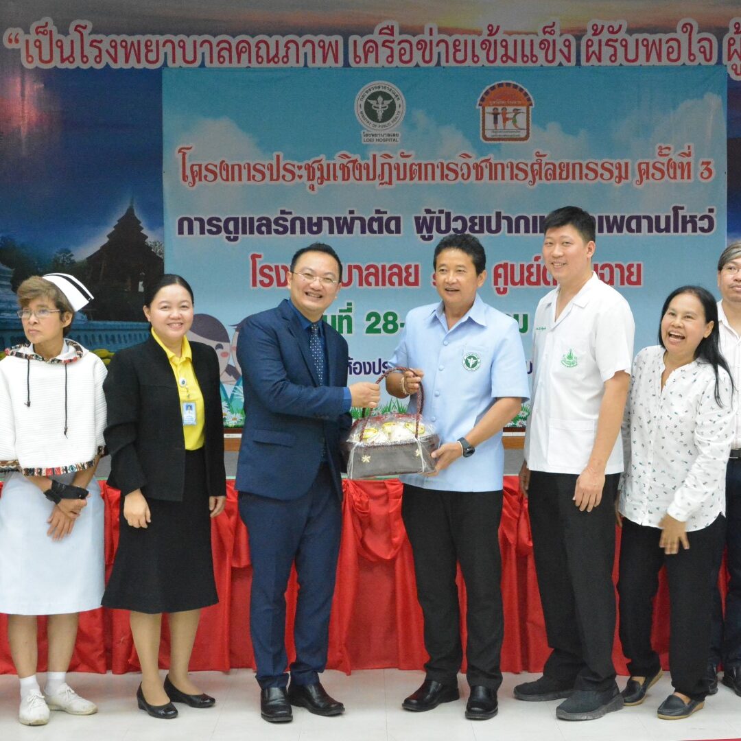 โครงการประชุมเชิงปฏิบัติการวิชาการศัลยกรรม (โครงการตะวันฉายสัญจร) ครั้งที่ 3 เพื่อสร้างเครือข่ายความร่วมมือในการดูแลรักษาผ่าตัดผู้ป่วยปากแหว่งเพดานโหว่ ร่วมกับโรงพยาบาลเลย จังหวัดเลย มีการผ่าตัดสอนแสดงผู้ป่วย จำนวน 2 ราย และเยี่ยมบ้านผู้ป่วย จำนวน 2 ราย เมื่อวันที่ 28-29 มีนาคม 2562 ณ ห้องประชุมภูหลวง โรงพยาบาลเลย
