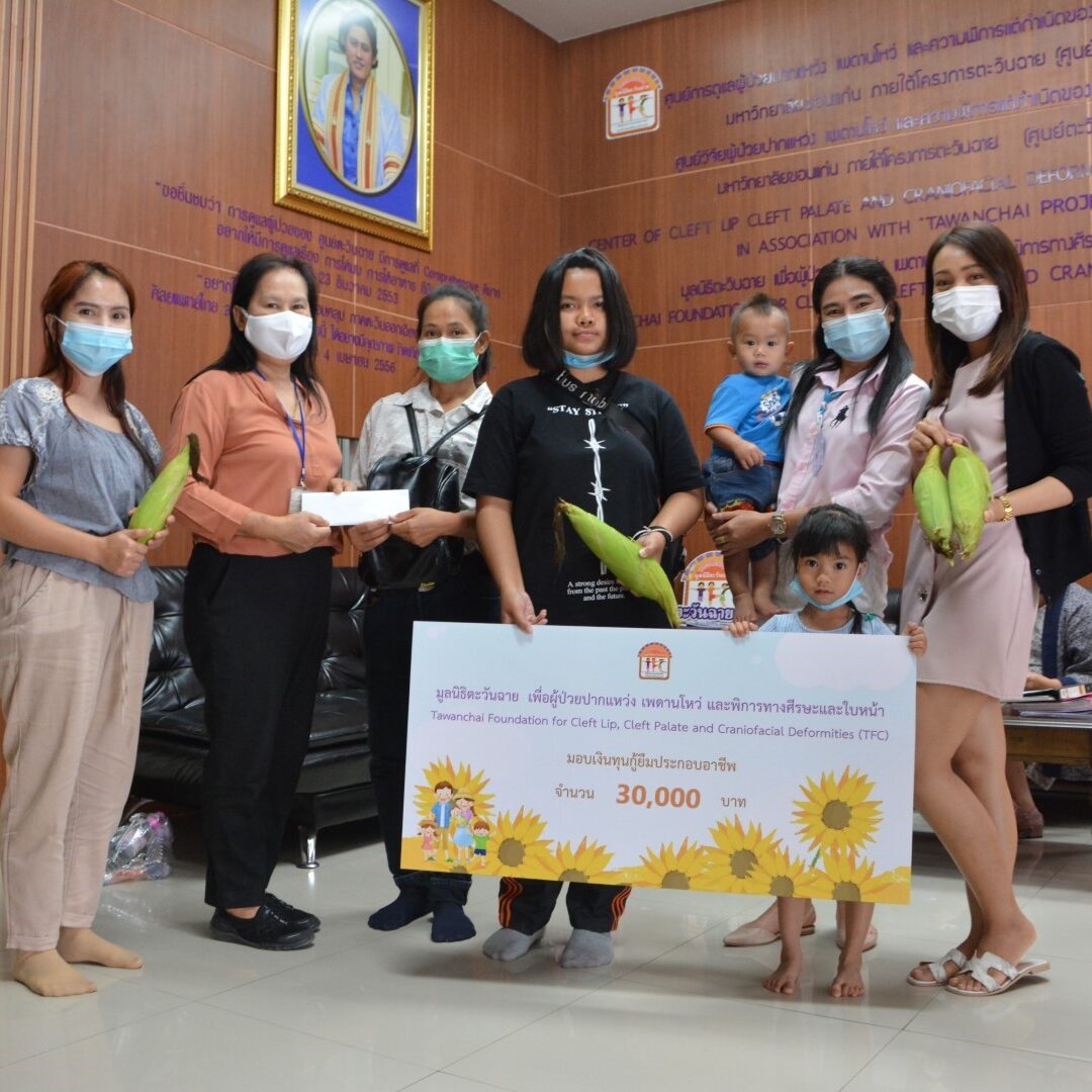 เมื่อวันที่ 12 มีนาคม 2564 นางสุธีรา ประดับวงษ์ กรรมการมูลนิธิตะวันฉายฯ เป็นตัวแทนประธานกรรมการมูลนิธิตะวันฉายฯ มอบเงินทุนกู้ยืมประกอบอาชีพ จำนวน 30,000 บาท ให้แก่ครอบครัวน้องสุพรรษา อ่อนก้านเหลือง ณ ศูนย์ตะวันฉาย คณะแพทยศาสตร์ มหาวิทยาลัยขอนแก่น เพื่อเป็นเงินทุนให้แก่ครอบครัวของผู้ป่วยปากแหว่งเพดานโหว่ฯ ได้กู้ยืมไปประกอบอาชีพ โดยไม่มีดอกเบี้ย ตามวัตถุประสงค์ที่ 2 ของมูลนิธิ คือการสนับสนุนการดำเนินกิจกรรมในการช่วยเหลือตนเองและครอบครัวผู้ป่วย และการแลกเปลี่ยนเรียนรู้ฟื้ยฟูสมรรถภาพปละพัฒนาศักยภาพผู้ป่วยปากแหว่ง เพดานโหว่และพิการทางศีรษะและใบหน้าในด้านการดำรงชีวิต การเข้าสังคม และการเสริมสร้างพลังอำนาจ