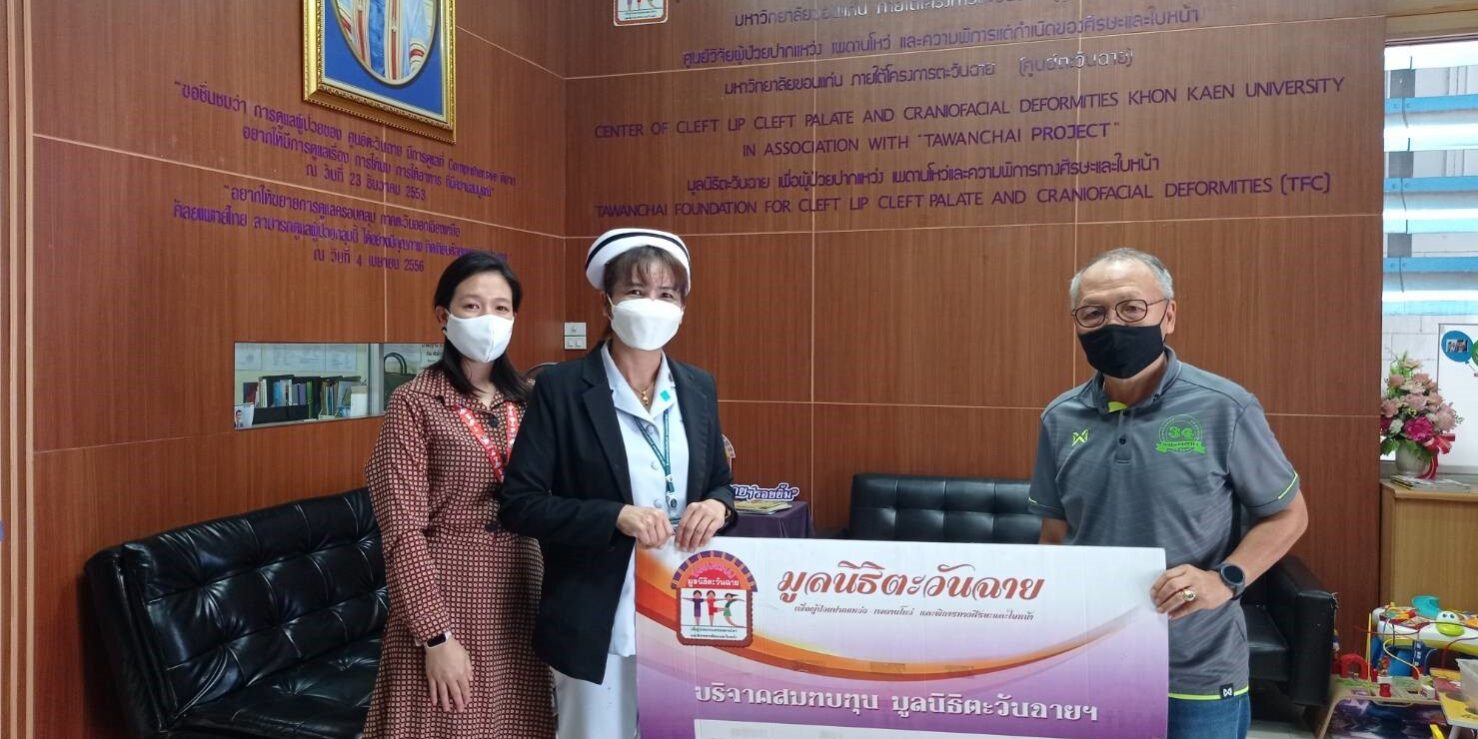 คุณอาคม ไชยมงคล บริจาคเงิน จำนวน 5,000 บาท โดยมี คุณยุพิน ปักกะสังข์ พยาบาลประสานงานการดูแลผู้ป่วยปากแหว่งเพดานโหว่ฯ ศูนย์ตะวันฉาย และเจ้าหน้าที่มูลนิธิ เป็นผู้รับมอบ ณ ศูนย์ตะวันฉาย เมื่อวันที่ 16 มิถุนายน 2564