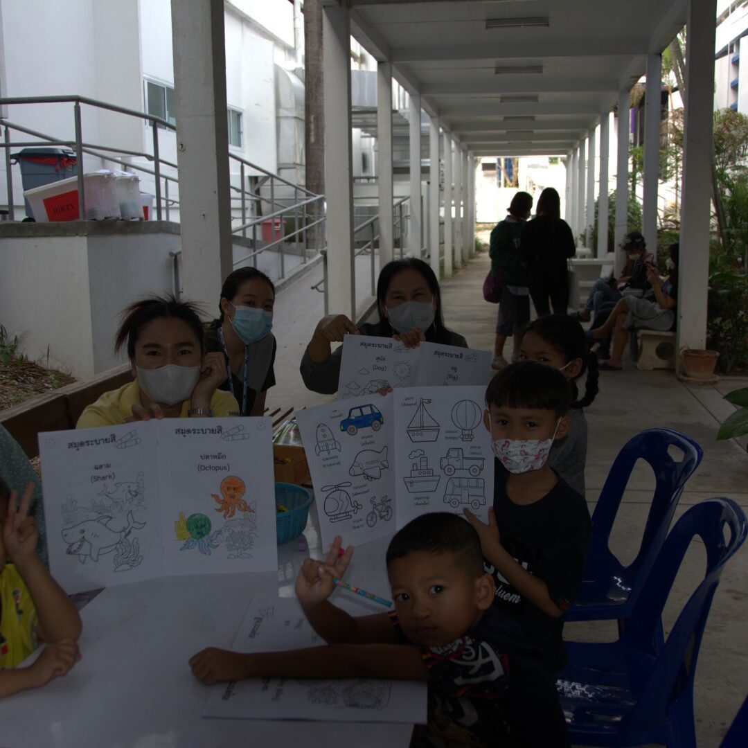 - กิจกรรมเสริมสร้างพัฒนาการ ระบายสีพร้อมเรียนรู้คำศัพ์ภาษาอังกฤษ โดยเจ้าหน้าที่มูลนิธิตะวันฉายฯ นักสังคมสงเคราะห์ คณะแพทยศาสตร์และคณะทันตแพทยศาสตร์ มหาวิทยาลัยขอนแก่น