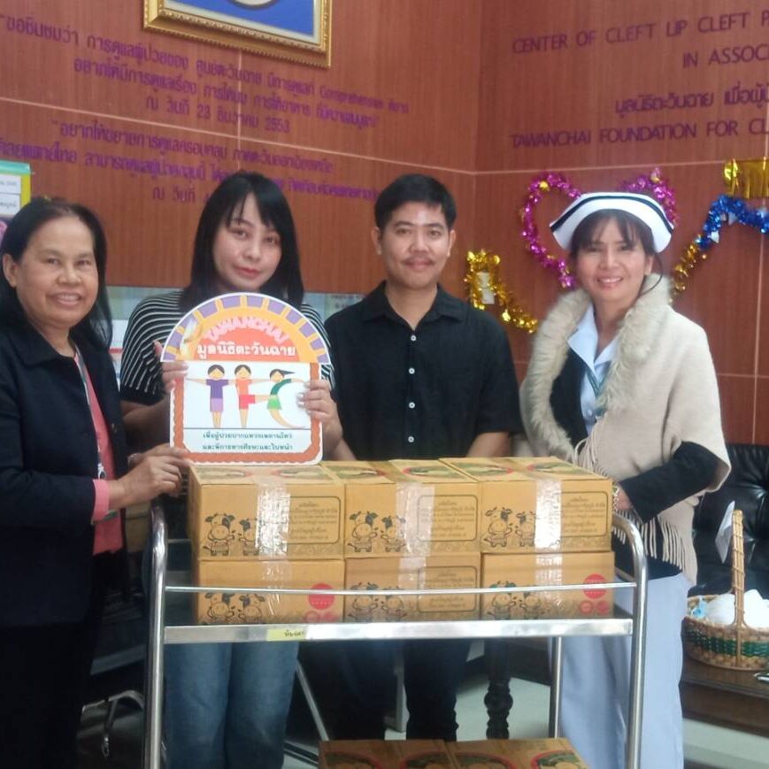 คุณวัลลดา นรโชติสิริและคณะ บริจาคเงิน 8,300 บาทและมอบสิ่งของ ได้แก่ นม UHT จาก บริษัท เคี้ยงเทรดดิ้ง จำกัด จำนวน 10 ลัง และสบู่เหลว ยาสีฟัน จากโรงเรียนอนุบาลกุลศิริ แก่มูลนิธิตะวันฉายฯ เพื่อใช้ในการดำเนินกิจกรรมสาธารณกุศลแก่ผู้ป่วยปากแหว่งเพดานโหว่ และความพิการแต่กำเนิดของศีรษะและใบหน้าและครอบครัว โดยมีคุณสุธีรา ประดับวงษ์ และ คุณยุพิน ปักะสังข์ เป็นผู้รับมอบ ณ ศูนย์ตะวันฉาย เมื่อวันที่ 26 ธันวาคม 2566