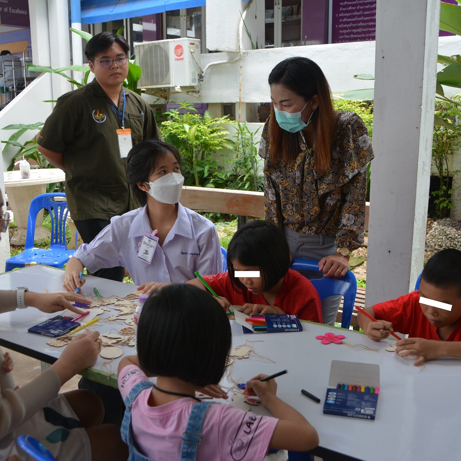 เมื่อวันศุกร์ที่ 13 กันยายน 2567 ณ มูลนิธิตะวันฉายฯ น้องตะวันฉายเข้าร่วมกิจกรรมตกแต่งโมบายไม้ โดยมี คุณณัฐริกา กองทอง นักสังคมสงเคราะห์ โรงพยาบาลทันตกรรม คณะทันตแพทยศาสตร์ นางสาวกุลปรียา พันทะชุม นักเรียนชั้นมัธยมศึกษาปีที่ 5 นางสาวขวัญจิรา พันทะชุม, นางสาวปิยะพร เศษสมบูรณ์ และ นางสาวกัญญณัช ศรีดี นักเรียนชั้นมัธยมศึกษาปีที่ 4 จากโรงเรียนร้อยเอ็ดวิทยาลัย จิตอาสา จำนวน 4 คน นายอัษฎาวุธ สุวรรณพันธ์ และ นางสาวณัฏฐณิชา บ่อทอง จากสาขาวิชาพัฒนาสังคม คณะมนุษยศาสตร์และสังคมศาสตร์ มหาวิทยาลัยขอนแก่น และเจ้าหน้าที่ศูนย์ตะวันฉาย พาทำกิจกรรมเพื่อพัฒนาทักษะและส่งเสริมการเรียนรู้
