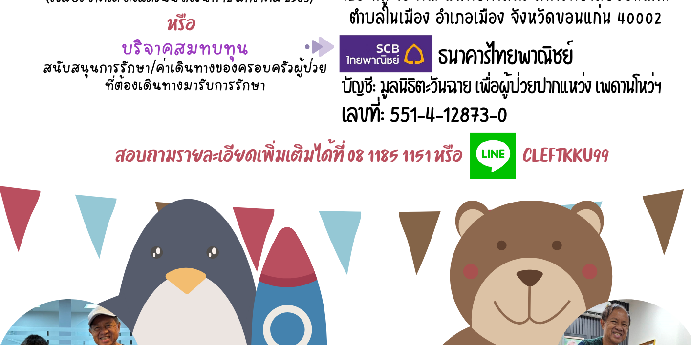 สอบถามรายละเอียดเพิ่มเติมได้ที่ 08 1185 1151 หรือ Line: cleftkku99